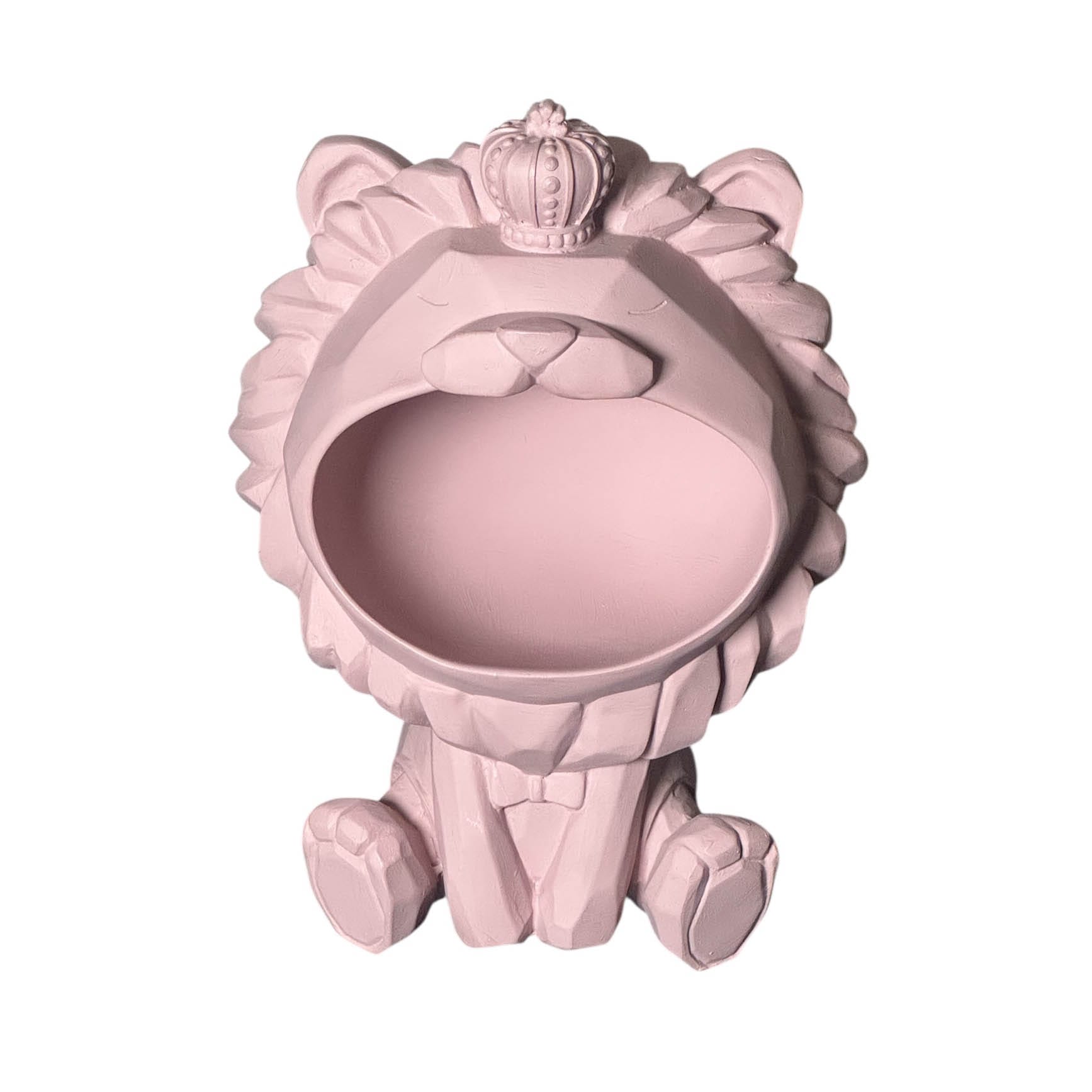 Aslan Kral Figürlü Dekoratif Kase – Pembe; Aslan figürlü Dekoratif Kase, güçlü formu ve dikkat çekici tasarımıyla bulunduğu ortama sanatsal bir karakter kazandıran özel bir aksesuardır. Reçine malzemenin sunduğu detaylı yüzey işçiliği, figürün etkileyici görünümünü öne çıkarırken pembe rengi ürüne modern ve dekoratif bir dokunuş sağlar.
